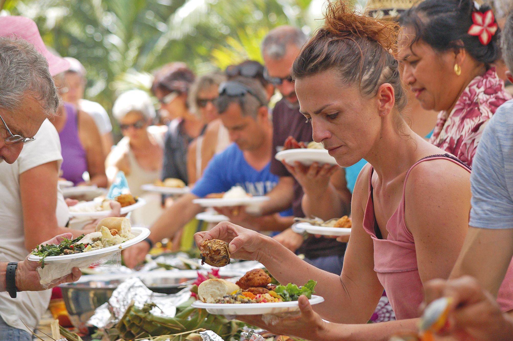 Les femmes de la tribu ont préparé des plats aux saveurs originales. Salades de poulpes et de laiterons, poissons fumés, crabes au curry, boulettes de poisson ou encore pintadines (huîtres de palétuviers) brûlées. « C’est un repas copieux, varié et excellent. On a découvert les ‘coquilles longs’, délicieux ! » a trouvé Carole, venue avec sa famille.