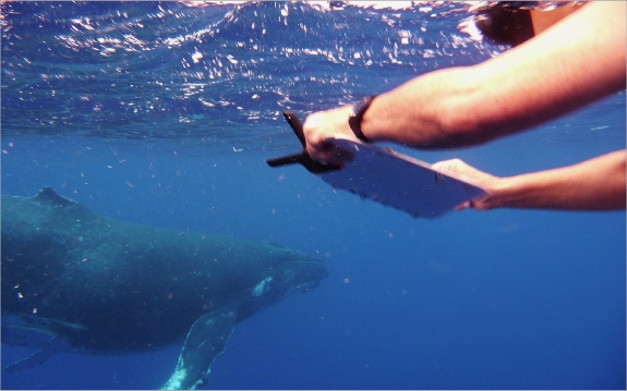 C'est aussi sous l'eau que l'artiste croque les fonds marins et qu'elle a eu la chance de croiser les baleines.