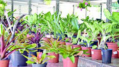 Broméliacées, philodendrons, orchidées, cactus, les plantes cultivées sans engrais s’épanouissent sous tout le faré.