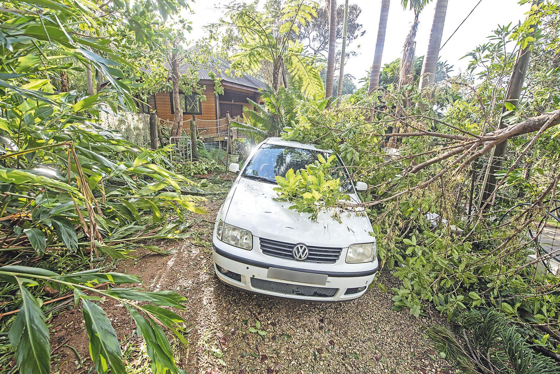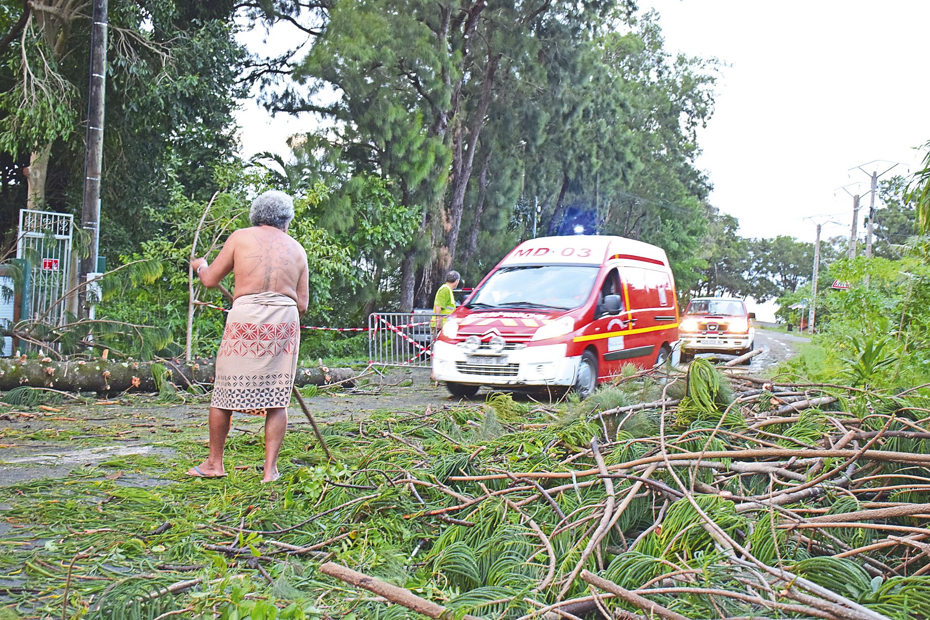 7 > Dans les hauts de La Coulée, la végétation dense n’a pas résisté aux violentes rafales de vent. La circulation n’a pu être rouverte qu’en fin de matinée dans le secteur du pic Kou, après l’intervention de riverains venus prêter main-forte aux pompiers.