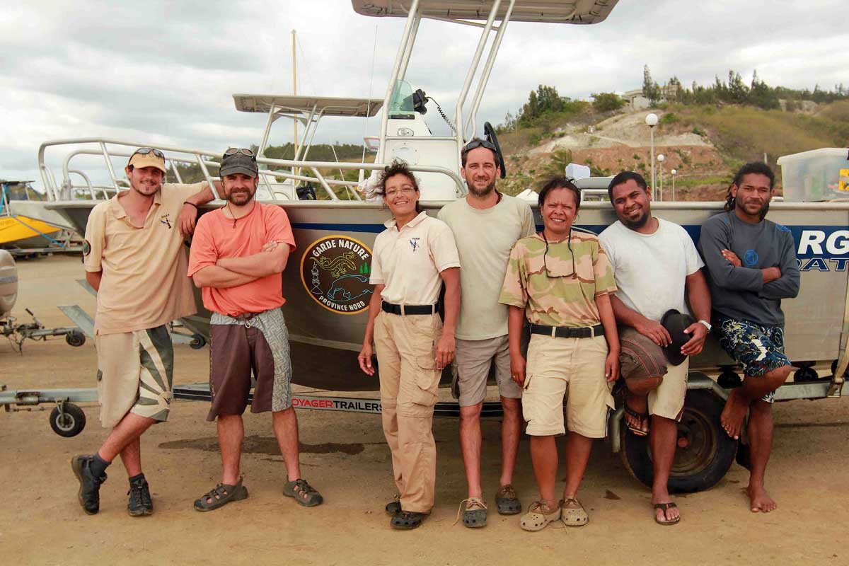 Campagne de dératisation des îlots ; le 11/11/2011 - 20:10Les gardes nature, l'ornithologue et l'étudiant qui ont mené la campagne de dératisation des îlots. La pose de boîtes pleines de raticide et celle de tapettes sont efficaces.