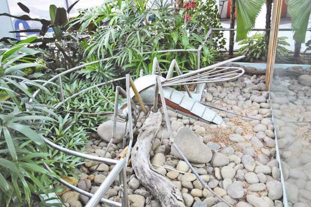 Queue de baleine et gros lézard aux airs de varan, deux sculptures d’Adjé qui ont pris leurs quartiers dans le parc du Château Hagen depuis le mois d’août dernier, suite à une exposition de la province Sud. L’institution présentait pour la première fois une partie de son fonds d’art, créé en 2003.