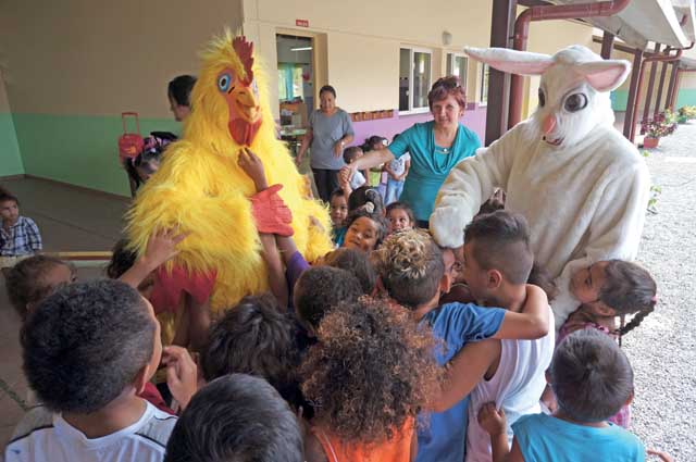 Au moment de Pâques, les maternelle du Mont-Dore ont la joie (ou la frayeur) de rencontrer la poule Mondorine et son ami le lapin Lapinou. Tous deux sont généreux en œufs et cloches en chocolat. De quoi calmer les pleurs des enfants peureux.