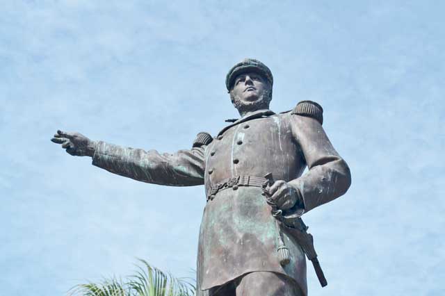 Elle est emblématique de la place des Cocotiers, de la colonisation française et de la revendication indépendantiste. La statue de l’amiral Olry, inaugurée en 1897, cristallise les oppositions politiques. Elle a été installée après l’insurrection kanak de 1 878. Son existence a plusieurs fois fait polémique.