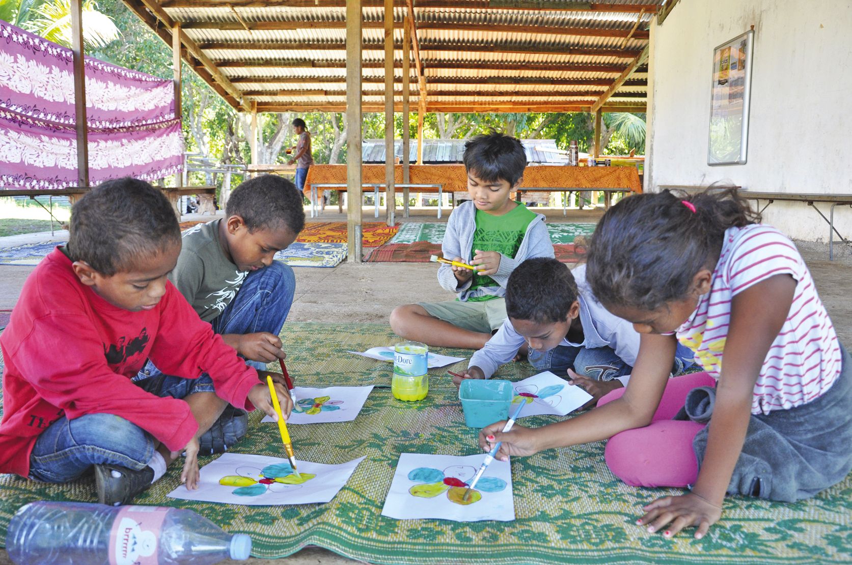 L’après-midi, les enfants se réunissent pour le chant choral interprété en langue yuanga.