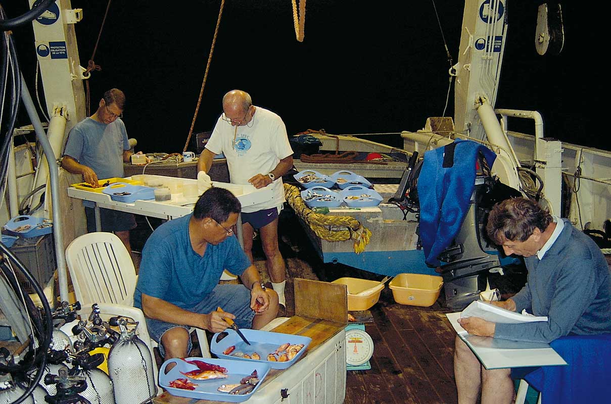 Comme un poisson dans l'eau, à l'IRD ; le 02/28/2012 - 14:07Après la journée en plongée, il faut souvent poursuivre le travail bien tard pour trier, inventorier ou pratiquer des analyses biologiques sur les échantillons prélevés.