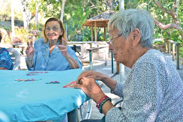 À l’ombre et par un soleil radieux, petite partie de bingo pour détendre l’atmosphère, mercredi, dans le cadre luxuriant de la maison de retraite Les jardins d’Eleusis.