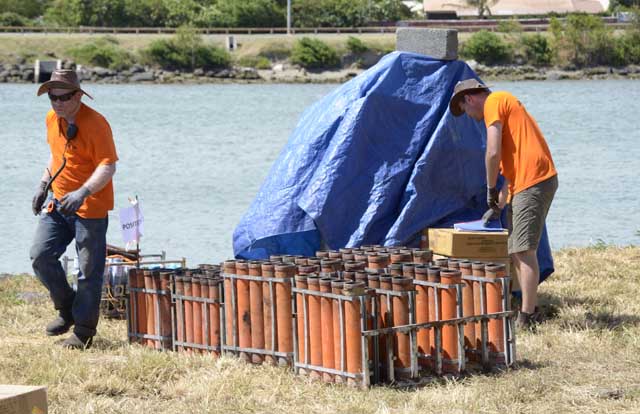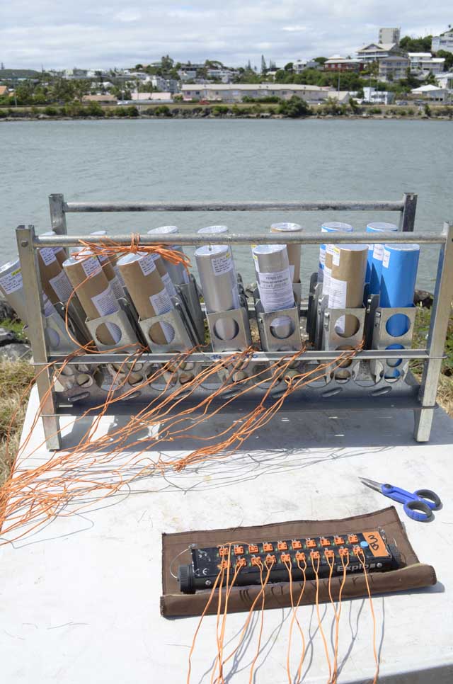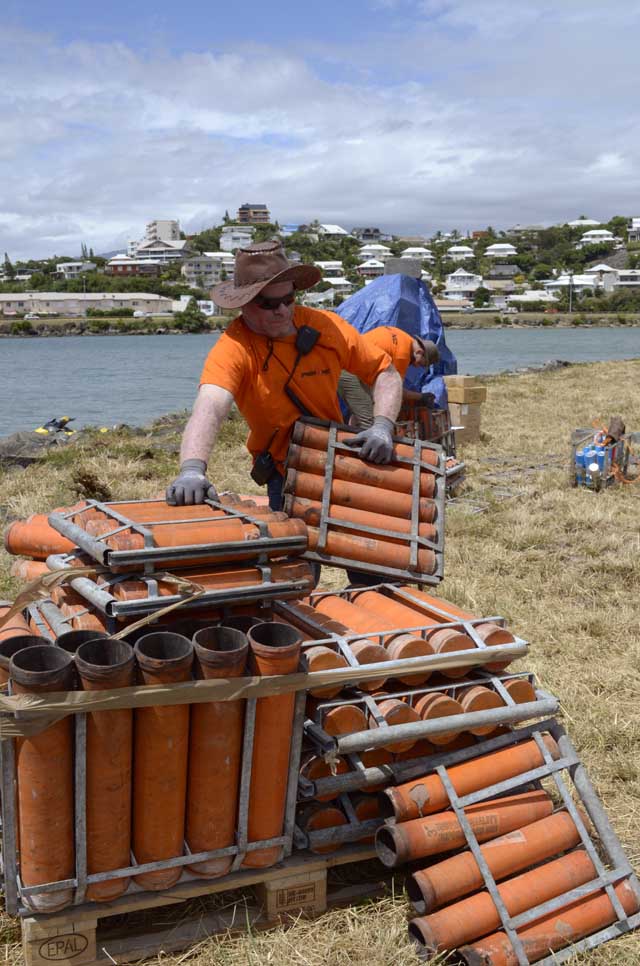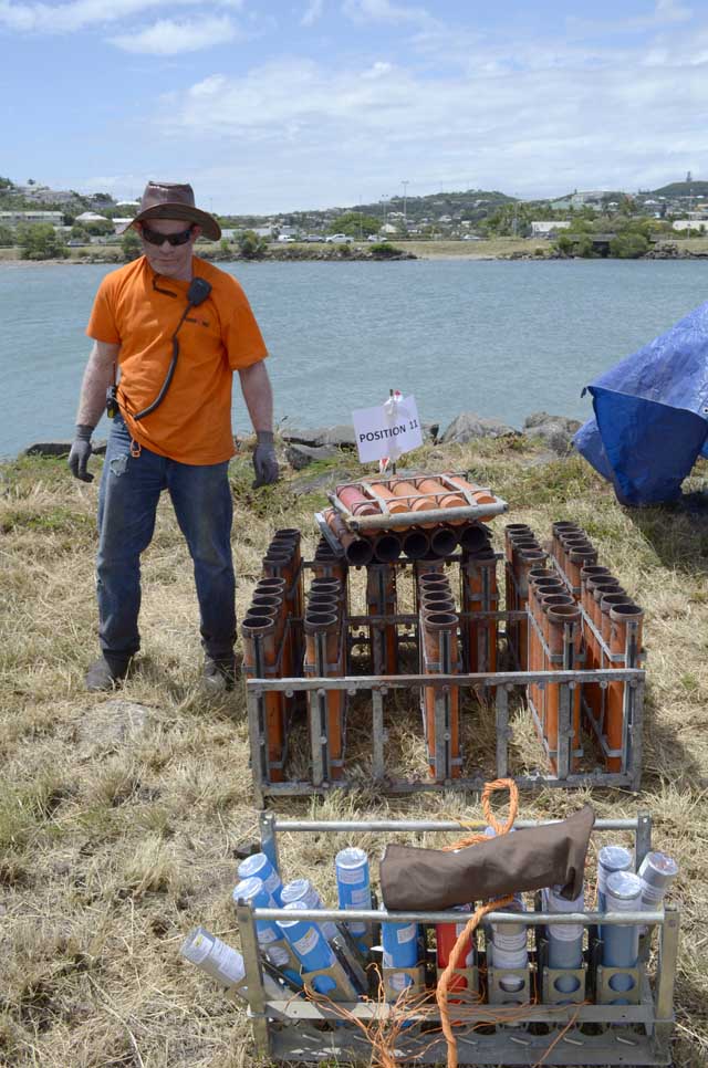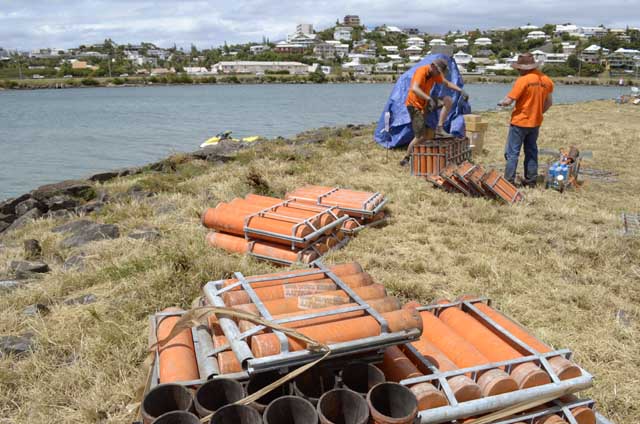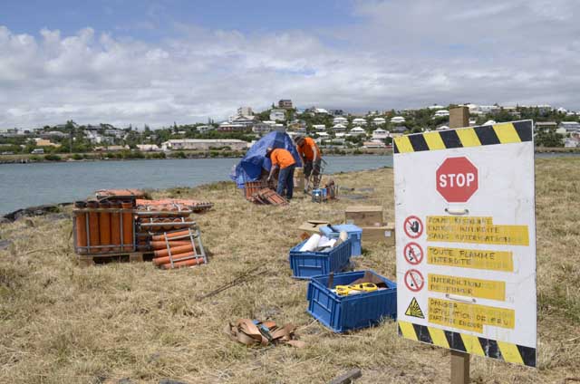 Pour mettre en place le feu d'artifice du Nouvel an, dimanche 31 décembre, qui sera tiré pour la première fois depuis l'îlot artificiel de Sainte-Marie, à Nouméa, les techniciens en charge du spectacle pyrotechnique sont à pied d'œuvre depuis vendredi pour régler les moindres détails. Reportage en images sur les coulisses de l'événement. Photos Cyril Terrien