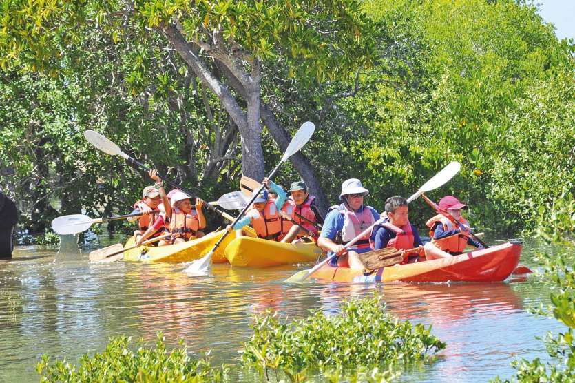 Guidé par Xavier Vanni, éducateur sportif mis à disposition par le club de voile Les toiles du lagon, le groupe des 7/9 ans est parti à la découverte de la mangrove en kayak. Les enfants ont pu distinguer les différentes espèces de palétuviers et ont surpris quelques crabes, mulets et oiseaux marins aux abords de l’arroyo.