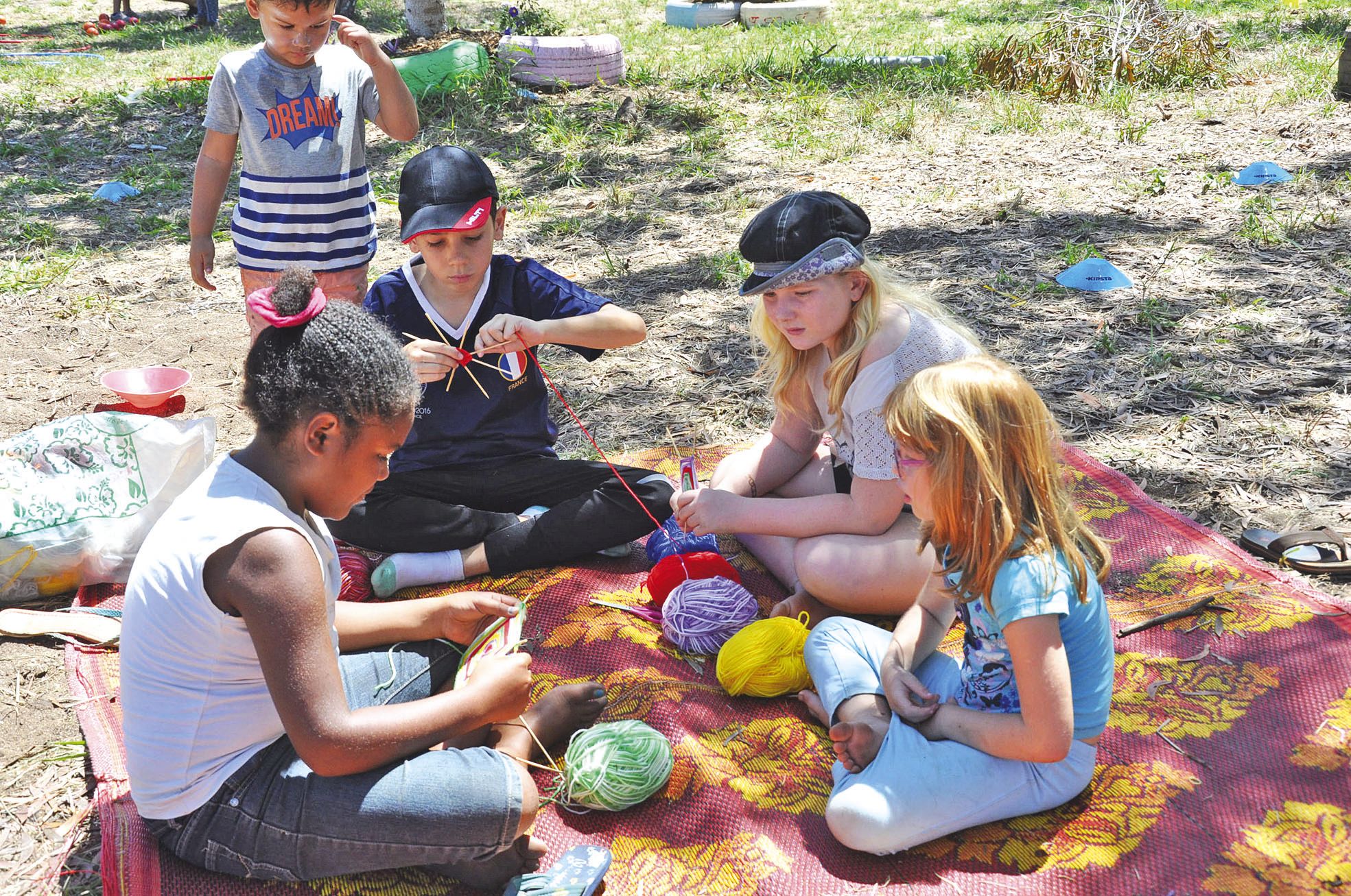 Avec l’aide de Myoko, les enfants de 7 à 9 ans ont confectionné des dessous-de-plat en bois de niaouli, décorés de cordelettes. Les plus grands, conseillés par Carole, la directrice du centre, ont confectionné des mobiles avec des motifs en laine de couleurs.