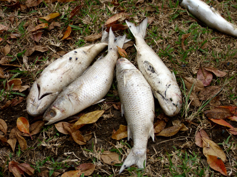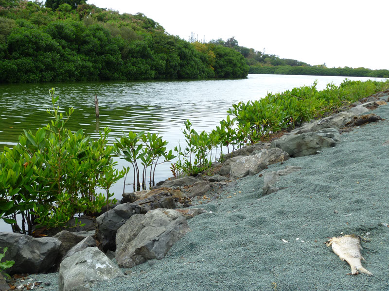 Des dizaines de poissons morts dans la mangrove ; le 12/08/2011 - 01:32Des cadavres de poissons, essentiellement de mulets, étaient encore visibles hier matin, en bord de mangrove. Des prélèvements d'eau ont été effectués mardi et confiés à des laboratoires.Photos : AW et DR