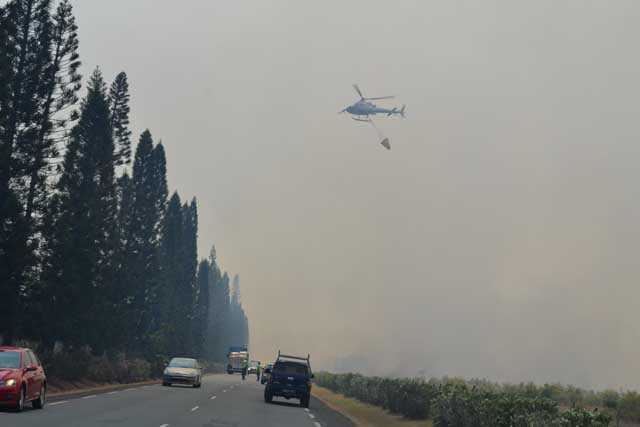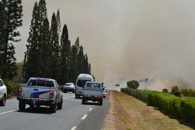 Près de 1 200 hectares ont été brûlés en une matinée pour ce feu qualifié d' « exceptionnel » par les pompiers, qui sont une cinquantaine sur place. Selon nos informations, des habitations sont directement menacées à Bangou et l'incendie est aux portes du village de La Tontouta. (photos Anthony Tejero) Pour suivre l'évolution de l'incendie, cliquez ici. Lire aussi : « Incendie à La Tontouta : Aircalin modifie son programme de vols »