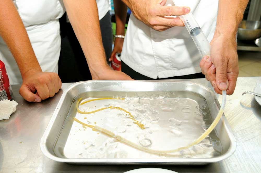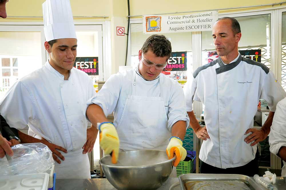 Des molécules plein la cuisine ; le 12/06/2012 - 20:53Dominique Poirier, à droite, initie les élèves du lycée Escoffier à la cuisine moléculaire.