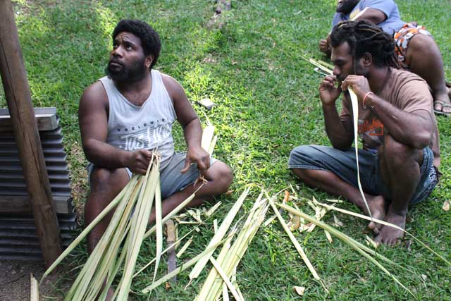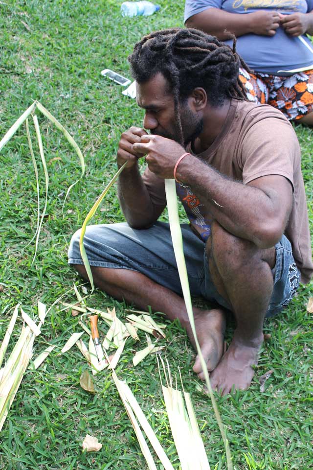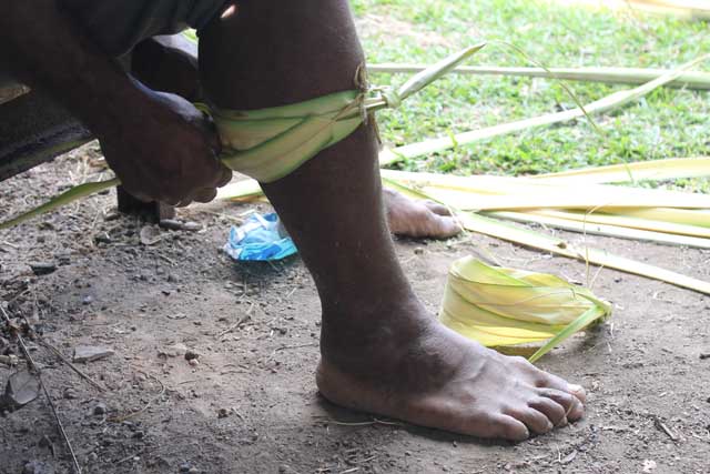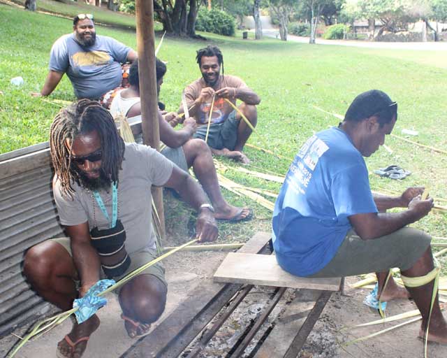 Les feuilles sont ensuite attachées deux par deux, avec une technique originaire des îles Loyauté…