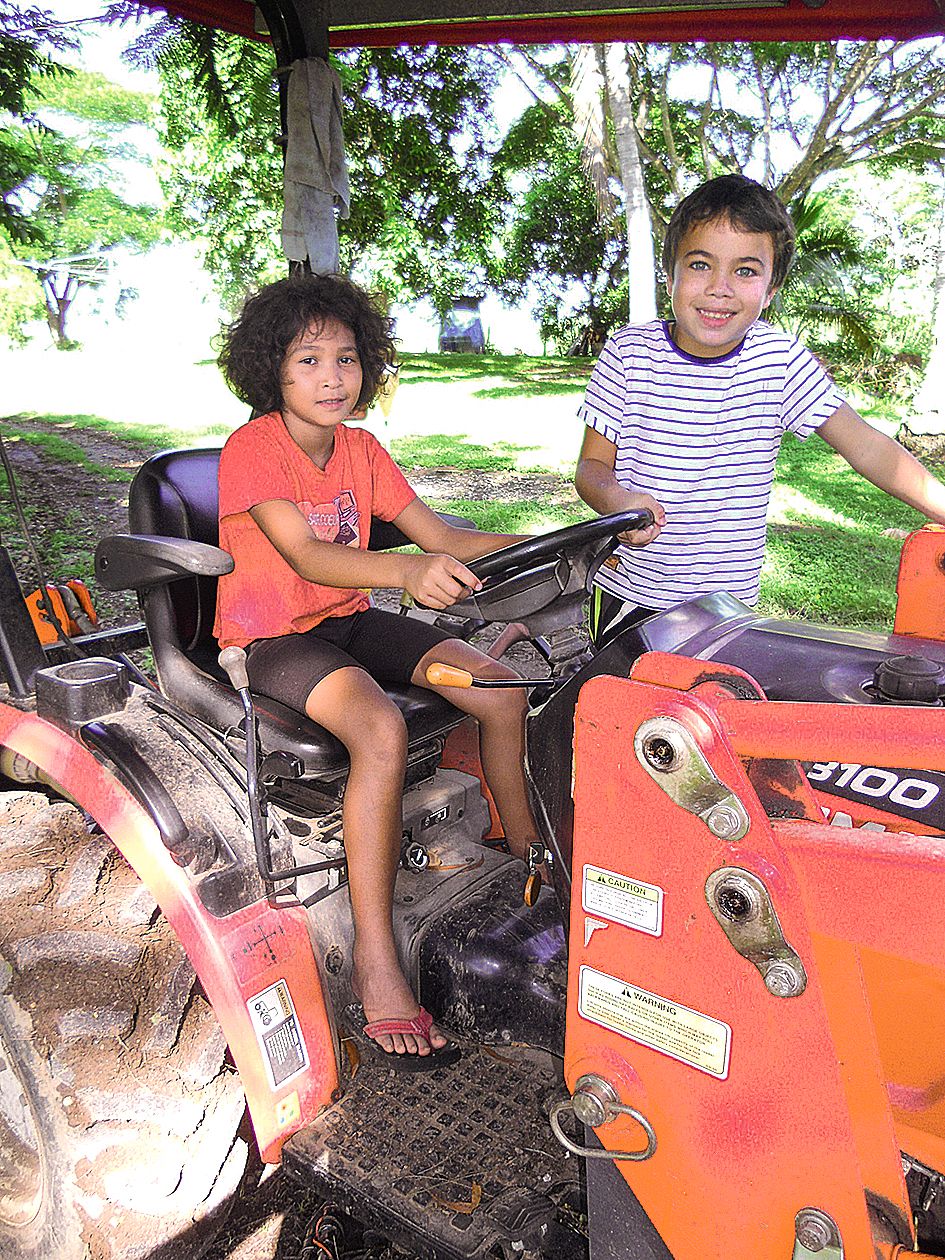 Grimper sur le tracteur et faire semblant de conduire, c’est le rêve de tous ces enfants et notamment de Merryl et de Shane.