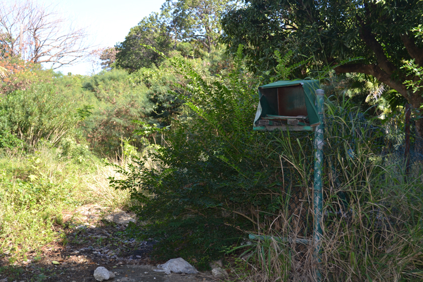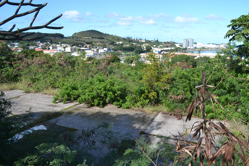 Les abords du chemin qui longe la crête jusqu'à l'autre côté de Doniambo (entreprises et anciens ateliers partagés) est régulièrement visité. Avec les hautes cheminées de la SLN qui se détachent dans le fond, derrière les arbres.