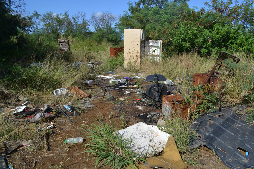 Toutes sortes de détritus jonchent les rues, jusqu'au sommet de la petite colline, dans la nature. Affaires de bureaux, frigos, machines à café, meubles, matelas en mousse, bouteilles plastiques, vêtements…
