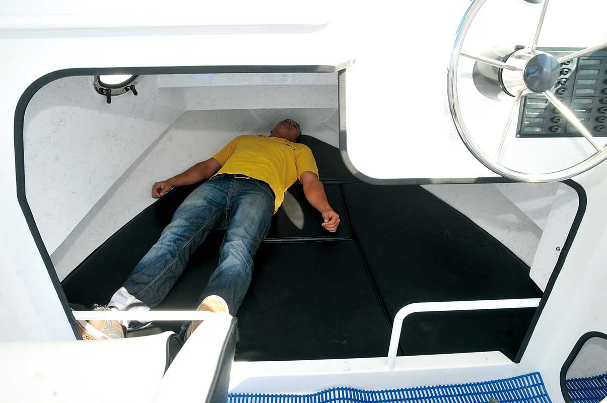 Merci à David qui nous a prouvé que l'on pouvait s'allonger totalement dans la cabine du bateau.