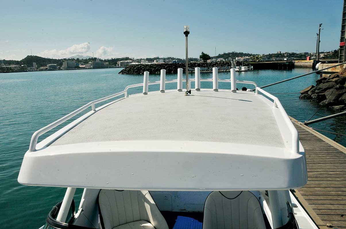 Le hardtop du Noble est garni d'antidérapant et pourra servir de bain de soleil pour la famille. Ceinturé de mains courantes, il facilite les déplacements à bord, en toute sécurité.