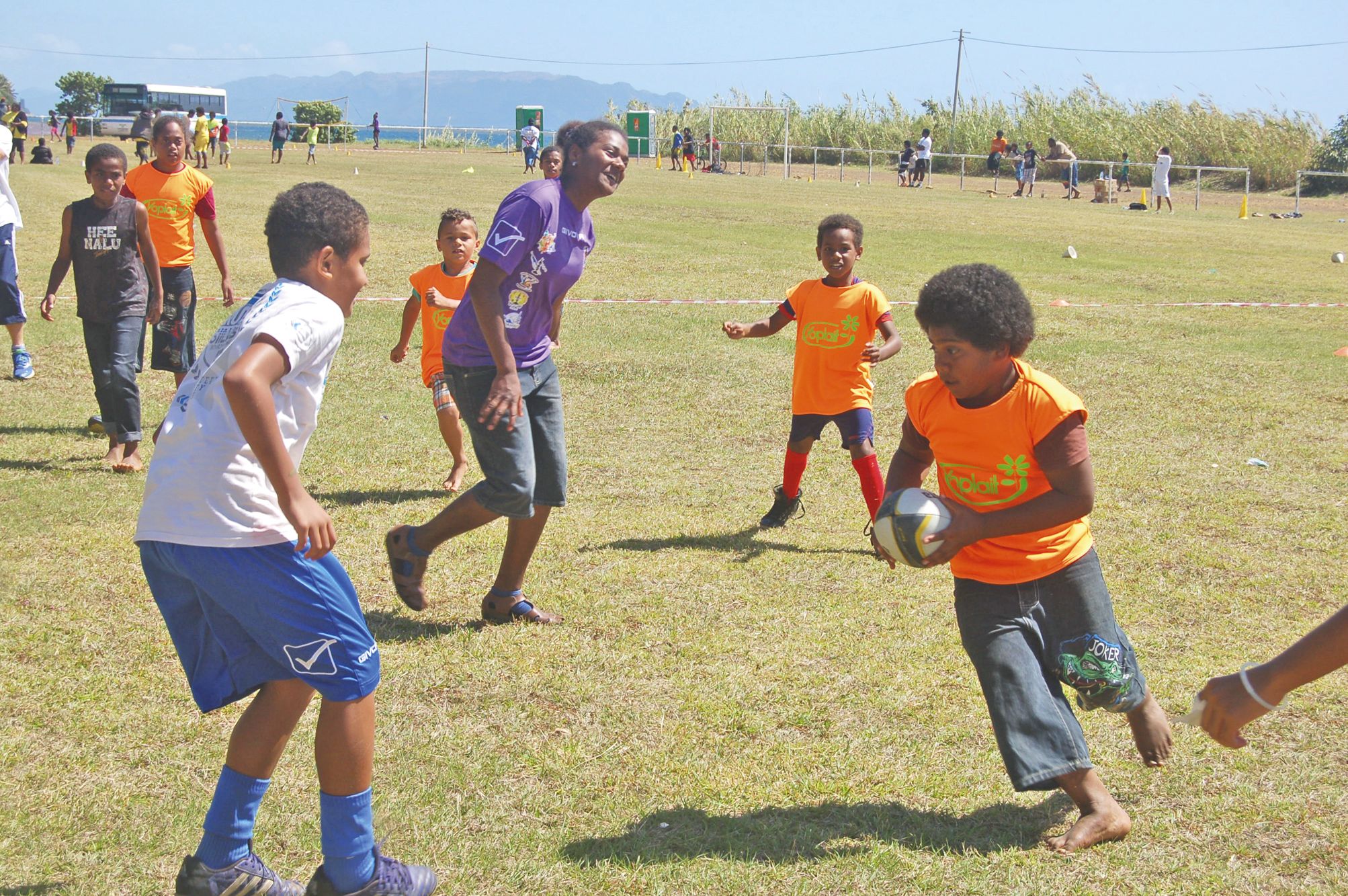 L’atelier de découverte du rugby montre bien les aptitudes et l’engouement des enfants à la pratique de ce sport, peu répandu sur le secteur. Ici, le jeune en possession du ballon entame une course pleine de feintes qui le mènera à l’essai.