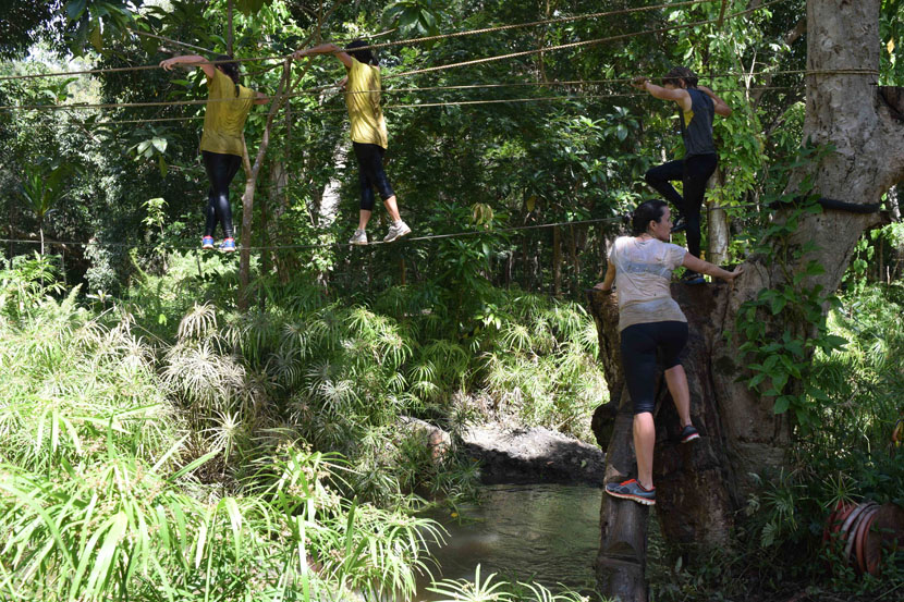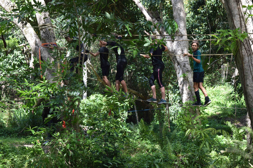 Le groupe des Familles et Loisirs ont dû faire de l'acrobranche et éviter une nouvelle fois de tomber à l'eau.