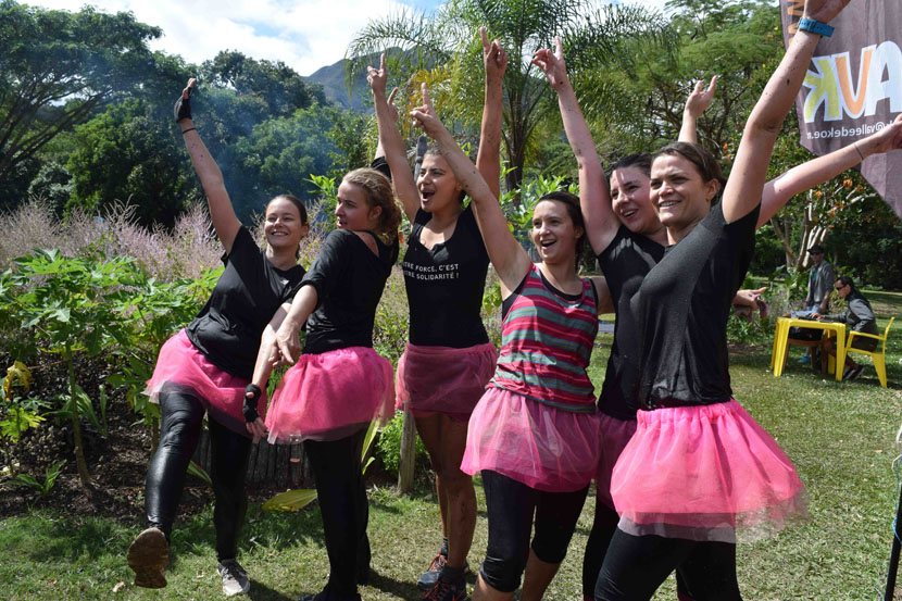 L'équipe des poulettes est fière. Avec leurs jupons roses, elles ont terminé le parcours avec le sourire, malgré la difficulté de certains obstacles.