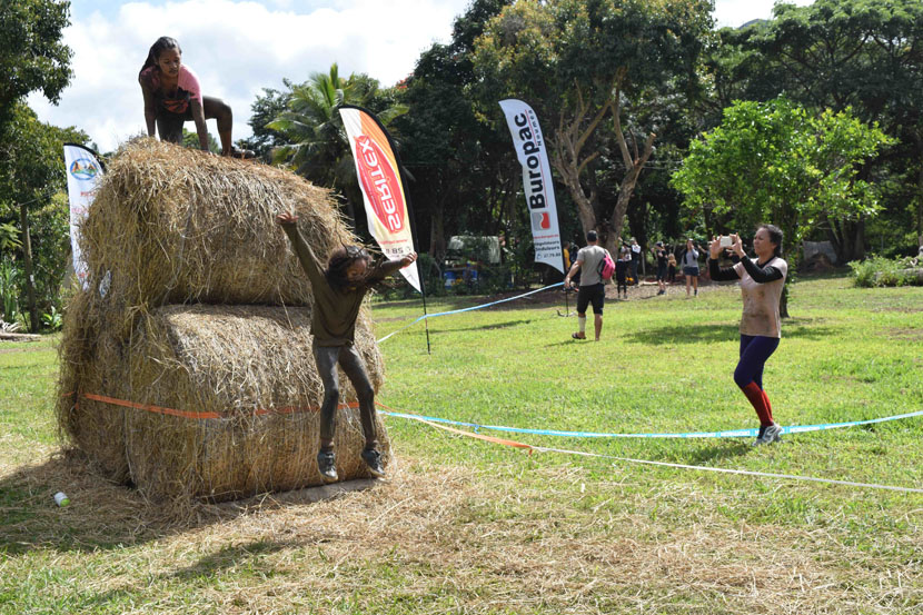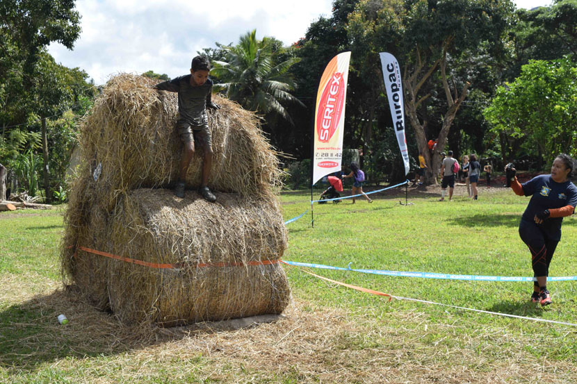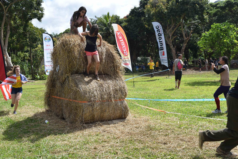 Les enfants doivent également passer l'obstacle des bottes de foin.