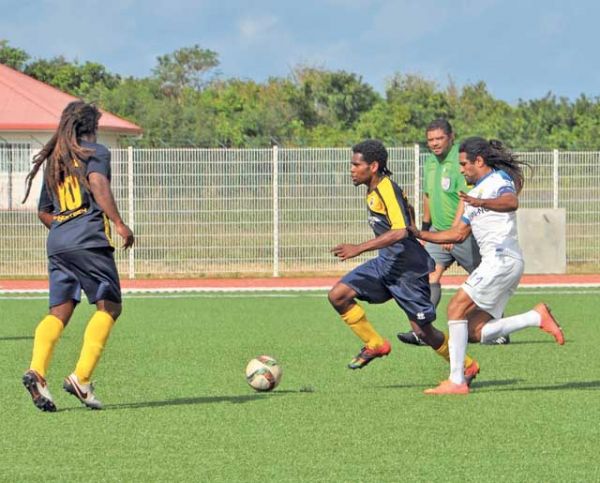 Battus 5-2 par Hienghène, début avril, à Koné, lors du match aller (5e journée), les Maréens de Patho (en bleu et jaune) ont pris leur revanche au match retour (14e journée). Pour l’équipe de la côte Est (en blanc), l’attaquant Bertrand Kaï (à droite) a ouvert le score, sur penalty (12e minute), son 30e but en 13 rencontres cette saison. Le défenseur central Ludovic Wakanumuné a égalisé à la 19e, puis Henry Kuane a offert la victoire à Horizon Patho en trouvant l’ouverture à la 82e, pour le plus grand bonheur du public.