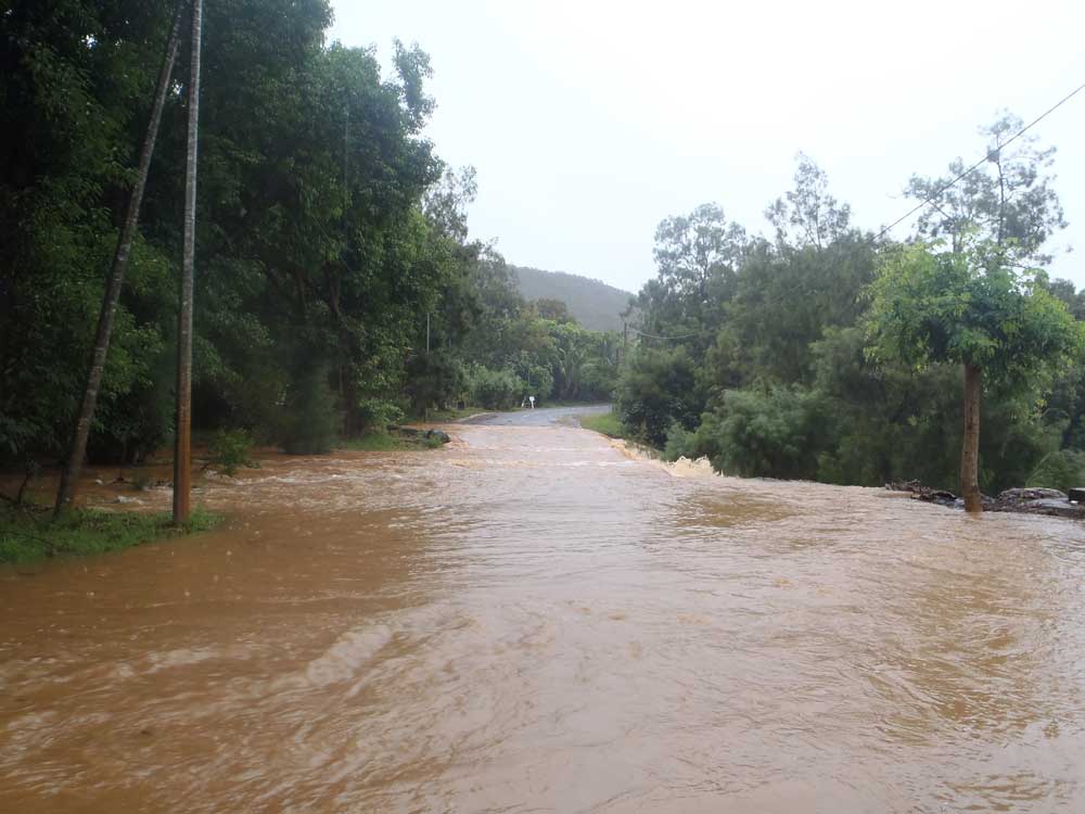 Comme prévu, la pluie a fait déborder les radiers, comme ici à Pouembout. Le vent a quant à lui empêché les avions d'atterrir.Comme prévu, la pluie a fait déborder les radiers, comme ici à Pouembout. Le vent a quant à lui empêché les avions d'atterrir.