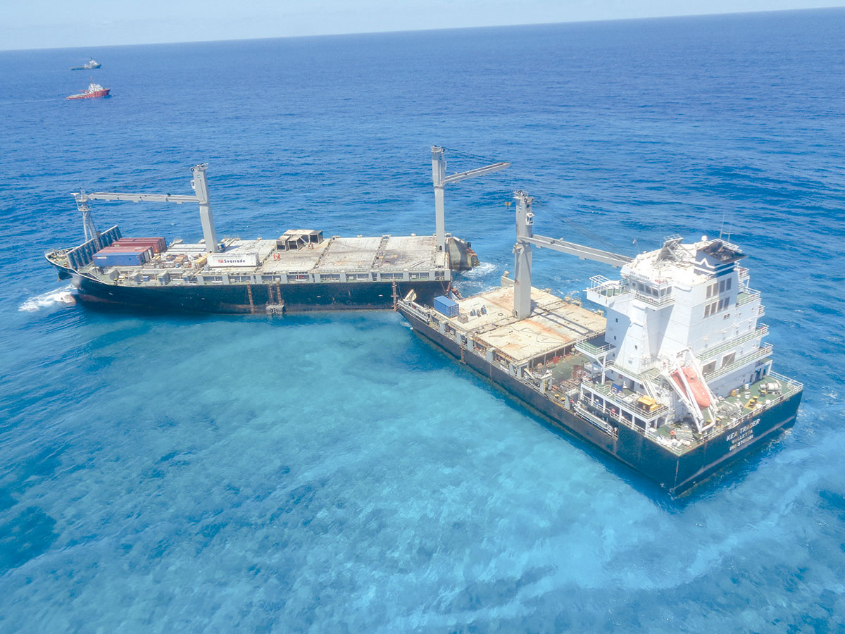 FAITS DIVERS. Cela fait désormais 182 jours que le navire s’est échoué sur le récif Durand, au large de Maré. Un travail titanesque s’est engagé pour sortir ce monstre des mers dans ce qui ressemble fort à une course contre la montre. Après trois semaines d’efforts, les soutes de fioul lourd sont entièrement vidées des impompables. Thierry Lataste, le haut-commissaire, l’assure : « le risque d’une pollution majeure par les hydrocarbures est clairement écarté ».