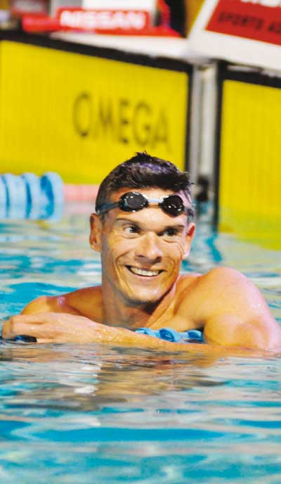 Kenneth To a tout cassé ; le 05/20/2013 - 09:46Kenneth To (plot n°3) a devancé Cameron McEvoy (à sa gauche) de neuf centièmes en finale du 100 m en Open. Gilles Dumesnil (à droite) a lui marqué son entrée chez les 40-59 ans.