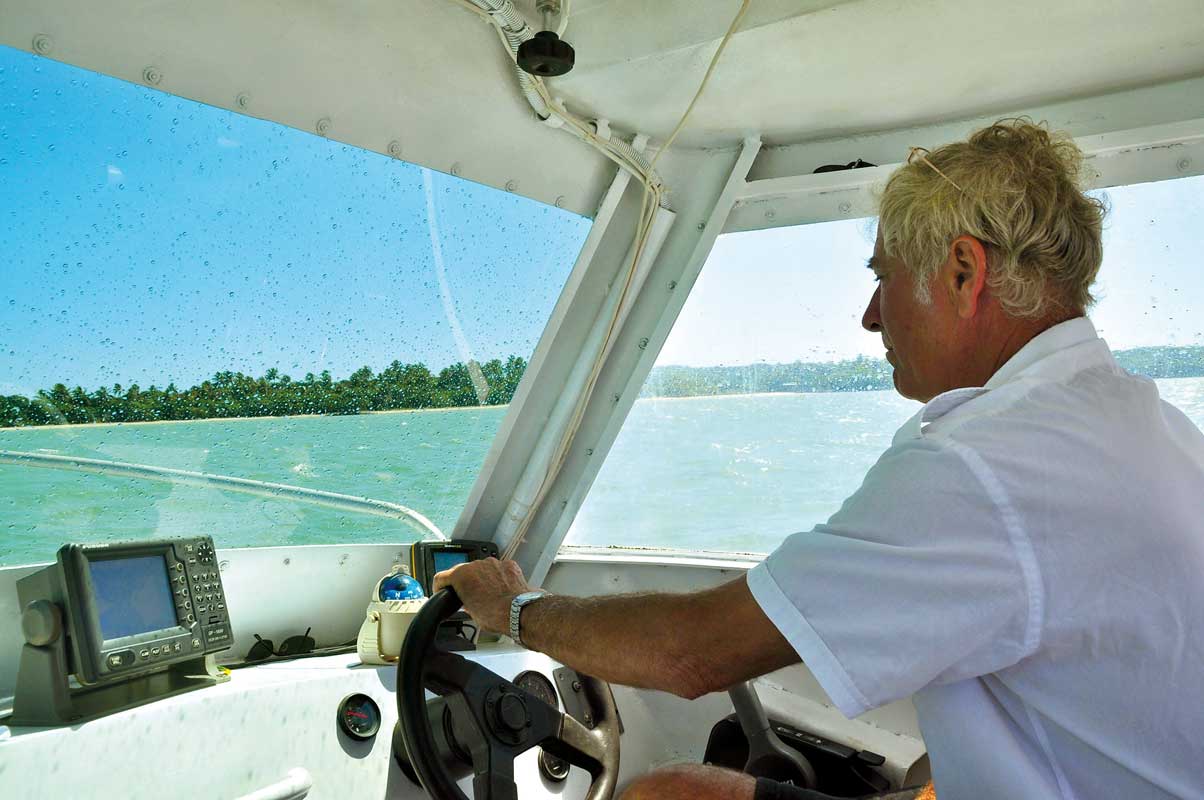 L'extrême Nord côté mer ; le 10/24/2011 - 17:38Jean-Pierre Séraphin, président de l'association Poum aventure, à la barre du Golone 2.Photo : Ivan Cotignola