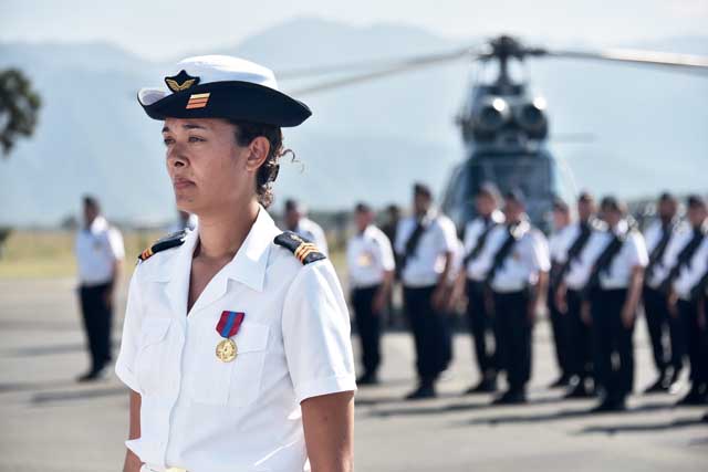 Sous l’œil des anciens combattants, de familles de militaires, d’élus et d’officiels, les troupes ont défilé sur le tarmac. Etaient également présents les élèves des « classes défense » du collège Ondémia et du lycée du Grand Nouméa, désormais habitués des lieux grâce à leur partenariat avec l’armée. « Vous êtes chez vous ici », leur a glissé le colonel Sadoux.
