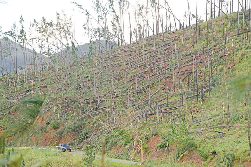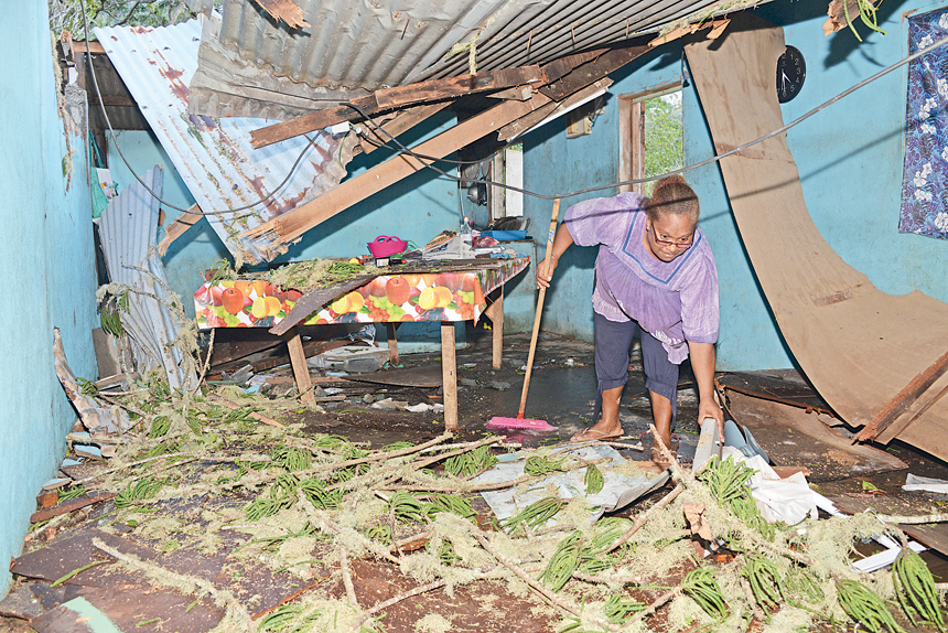 8 > La famille Hari, dans la tribu de Koh, a vu sa maison détruite par la chute d’un pin colonnaire de 25 m.