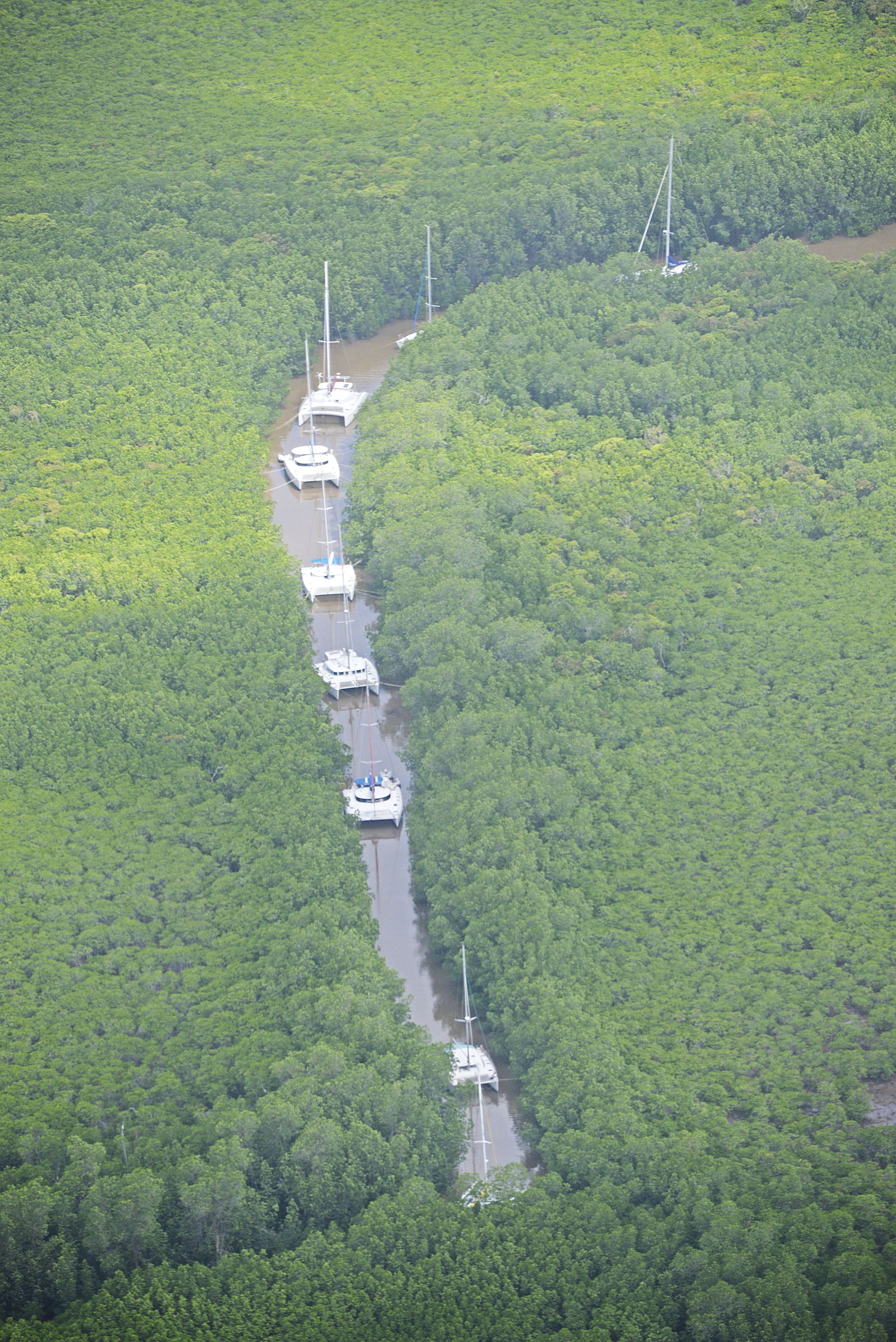 5 > Les voiliers, à Païta, se sont réfugiés dans la mangrove.
