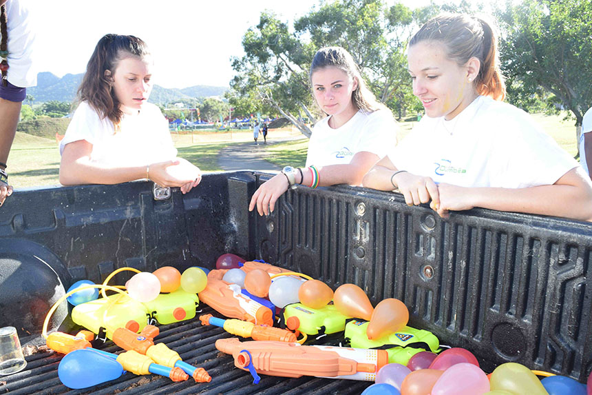 Une trentaine de jeunes bénévoles ont été répartis à différentes étapes de la course. Leur travail : asperger avec leur pistolet à eau les coureurs et leur lancer les poudres colorées.
