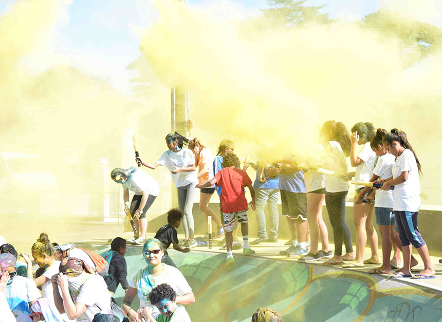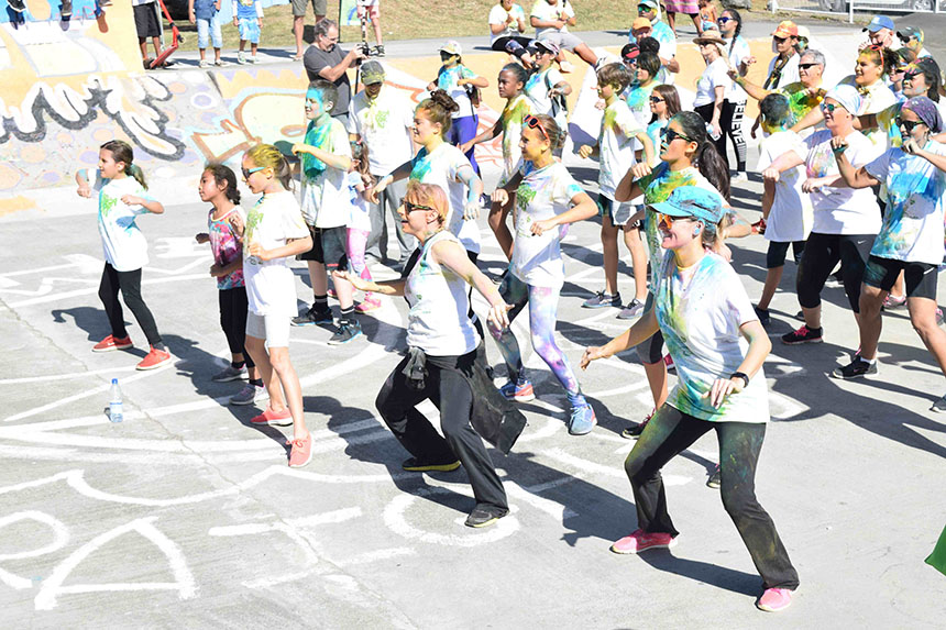 A la fin de la course, les participants réunis dans le «bol» du skate-park de Koutio ont reçu une dernière salve de peinture.