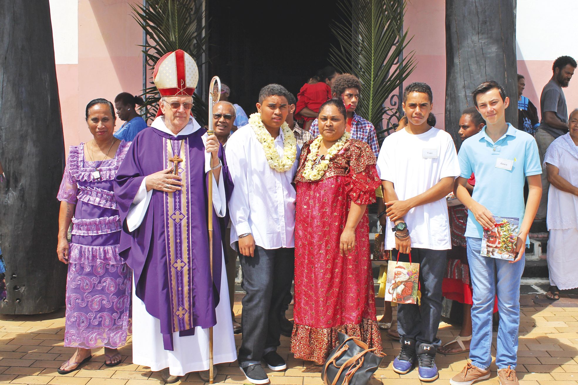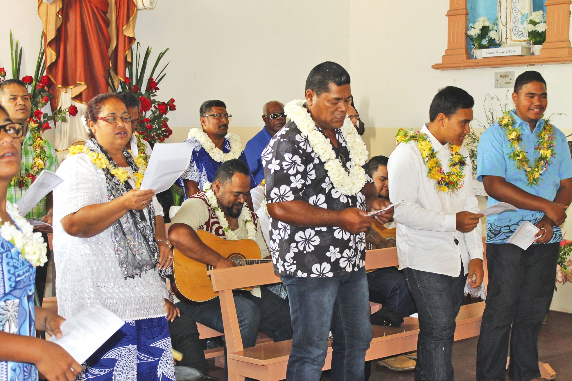 2 > Le groupe d’animation de la paroisse de Saint-Pierre-Chanel de La Foa, fort d’une vingtaine de chanteurs et de musiciens, a fait spécialement le déplacement pour animer les différents chants de la célébration eucharistique. A la fin de la messe, les confirmés ont présenté, eux aussi, un chant mimé.