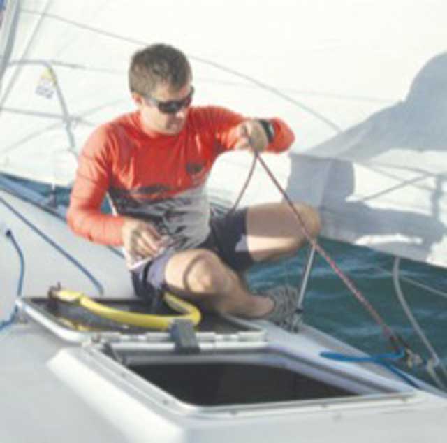 A la proue, Josselin est en charge des différentes voiles et d’informer de ce qu’il voit de l’avant du bateau. Un poste clef.