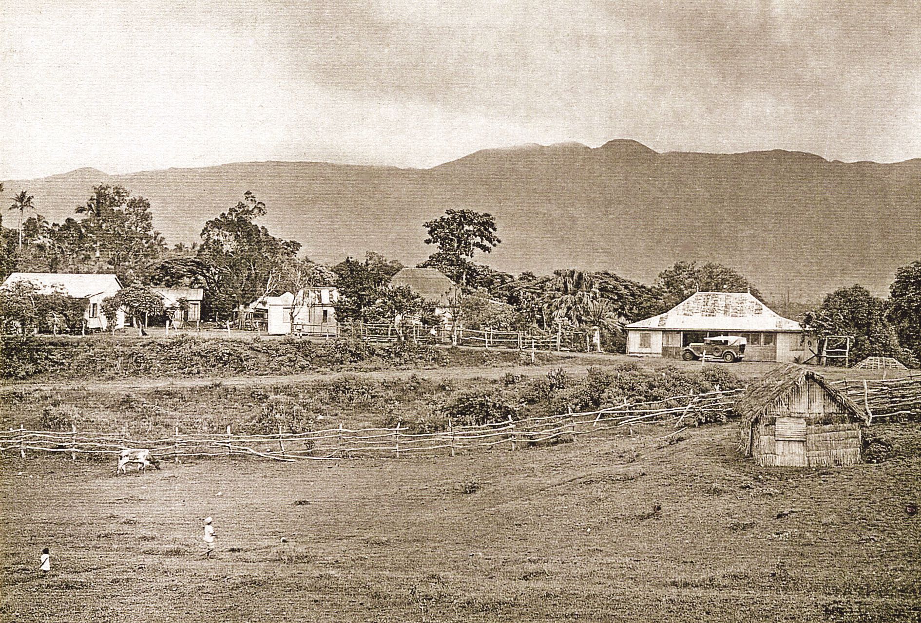 2 > La grande propriété d’Auguste à Nakéty. A gauche, la maison d’habitation, et divers logements abritant une boucherie, une boulangerie, un hangar à café et le logement du personnel. A droite le magasin.