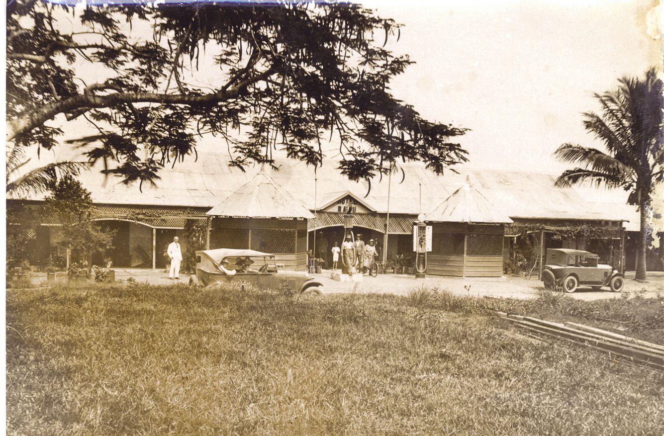 Joseph Banuelos (troisième homme en partant de la droite, debout au second plan) et sa première épouse Justine Josset (au centre) devant l’hôtel le Banu. De sa seconde union avec Henriette Heymann naît Lucette, épouse François Sacoman, union sans postérit