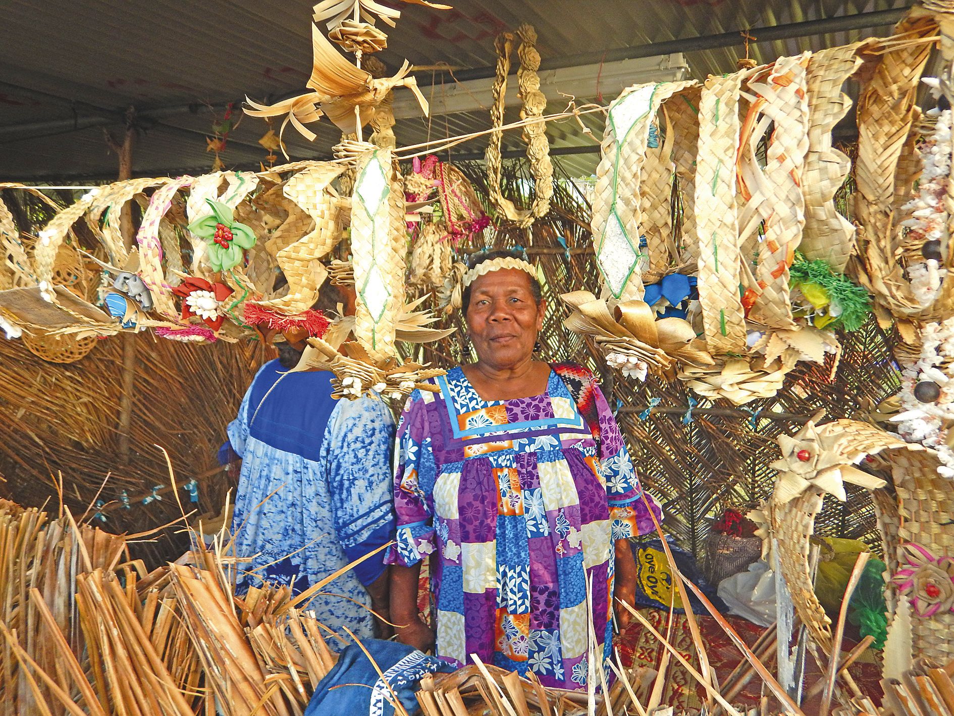 Sur les stands d’artisanat, le savoir-faire était à l’honneur, notamment avec les couronnes en pandanus tressés de Clothilde Wala.