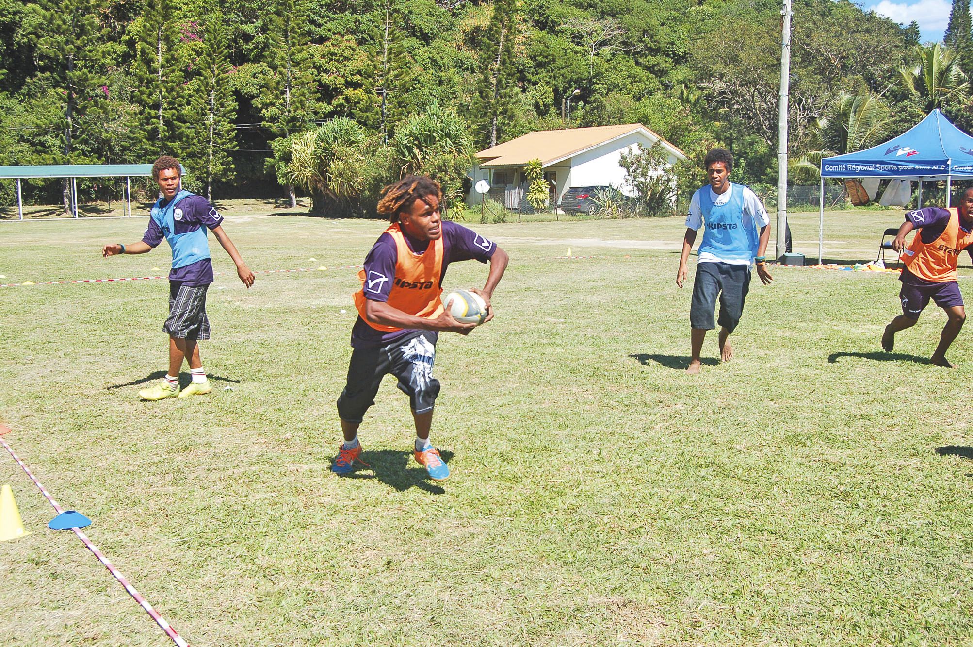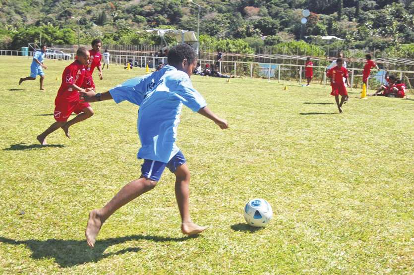 188 jeunes, répartis en 22 équipes, étaient engagés dans le tournoi de football, dont deux équipes féminines en 16/18 ans, de Ponérihouen et de Poindimié. Sur la photo, Hienghène à l’attaque face à Poindimié, chez les 13/15 ans.