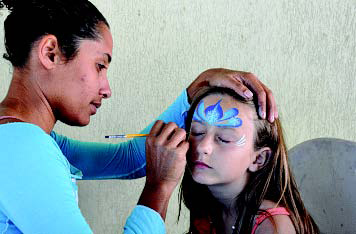 Adeline proposait des maquillages au choix des enfants (Reine des neiges, dragon, Minnie, le requin, Batman, léopard, etc.) et des tatouages paillettes, ainsi que la possibilité de réaliser des tableaux de sables colorés.