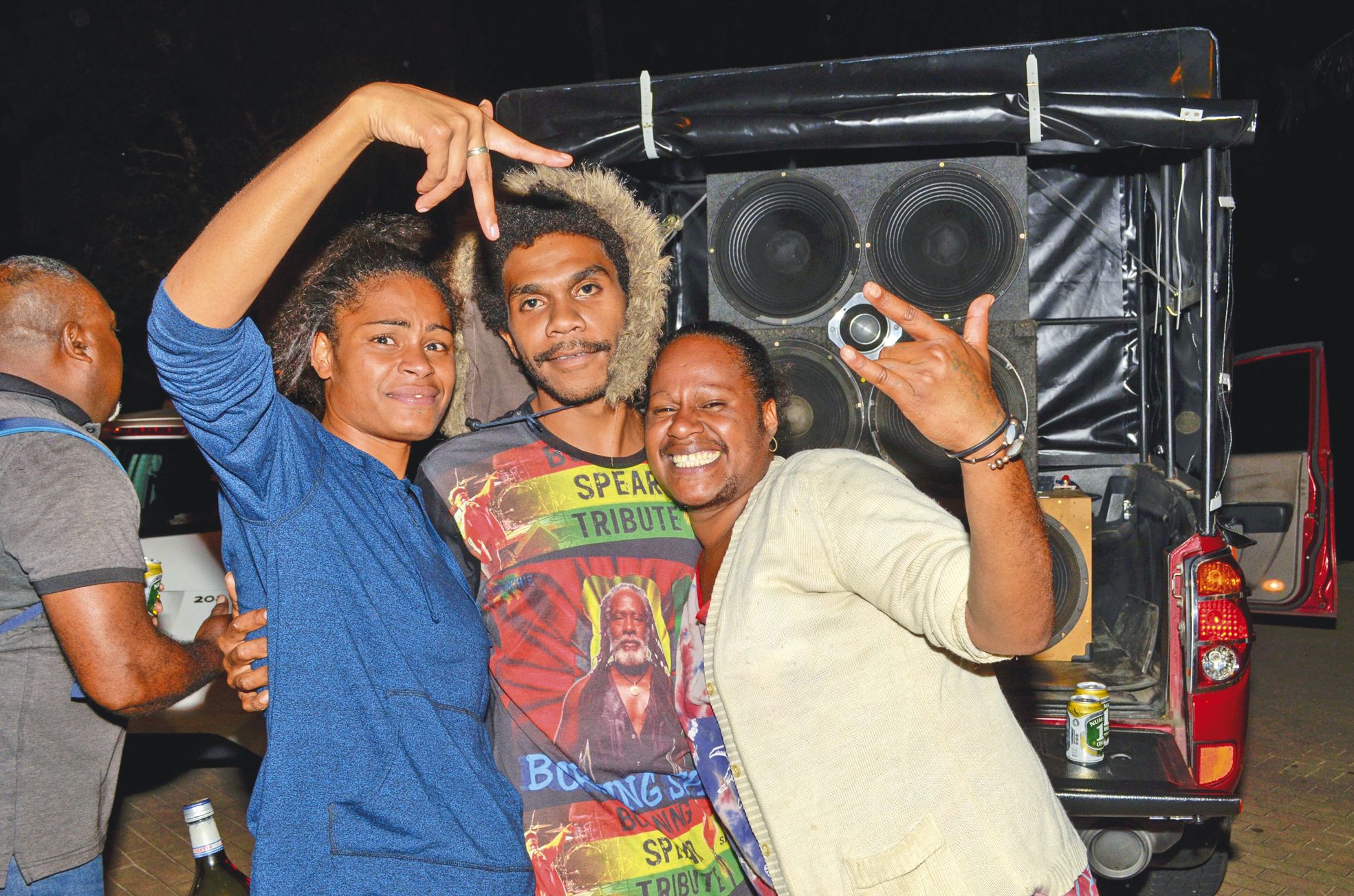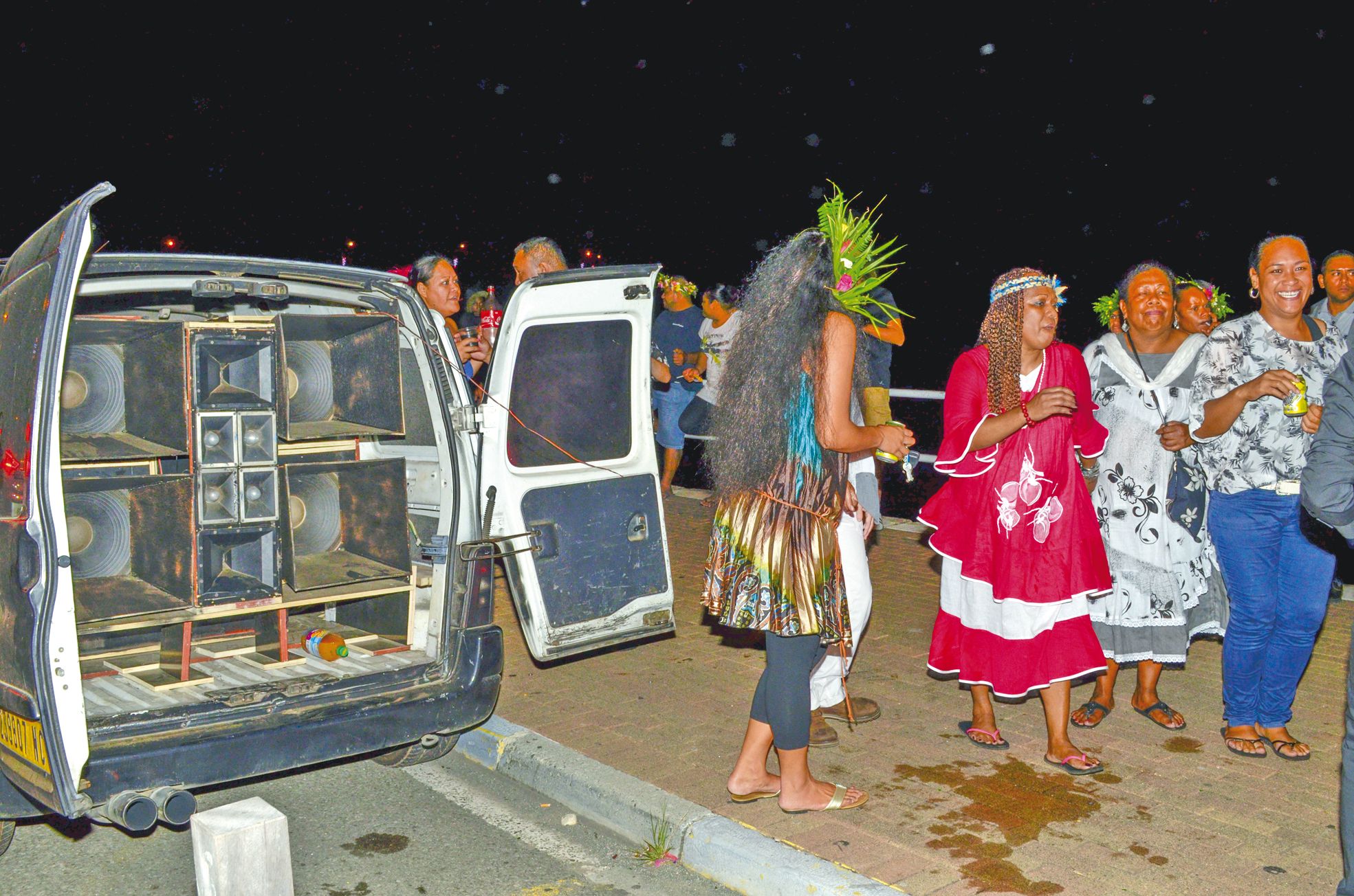 Pick-up et camionnettes munis de murs de son étaient au rendez-vous sur les baies. Garés en épi toutes les quelques dizaines de mètres, il n’en fallait pas plus pour attirer de petites grappes de fêtards autour d’un petit verre et d’une danse improvisée.