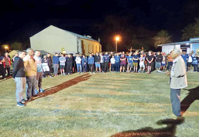 Gérard Salaün, président du Comité cycliste, accompagné des deux derniers vainqueurs Thierry Fondère (2014) et Taruia Krainer (2015) ont présenté mercredi soir une coutume aux autorités coutumières et religieuses des tribus de Luecila et Hnapalu.