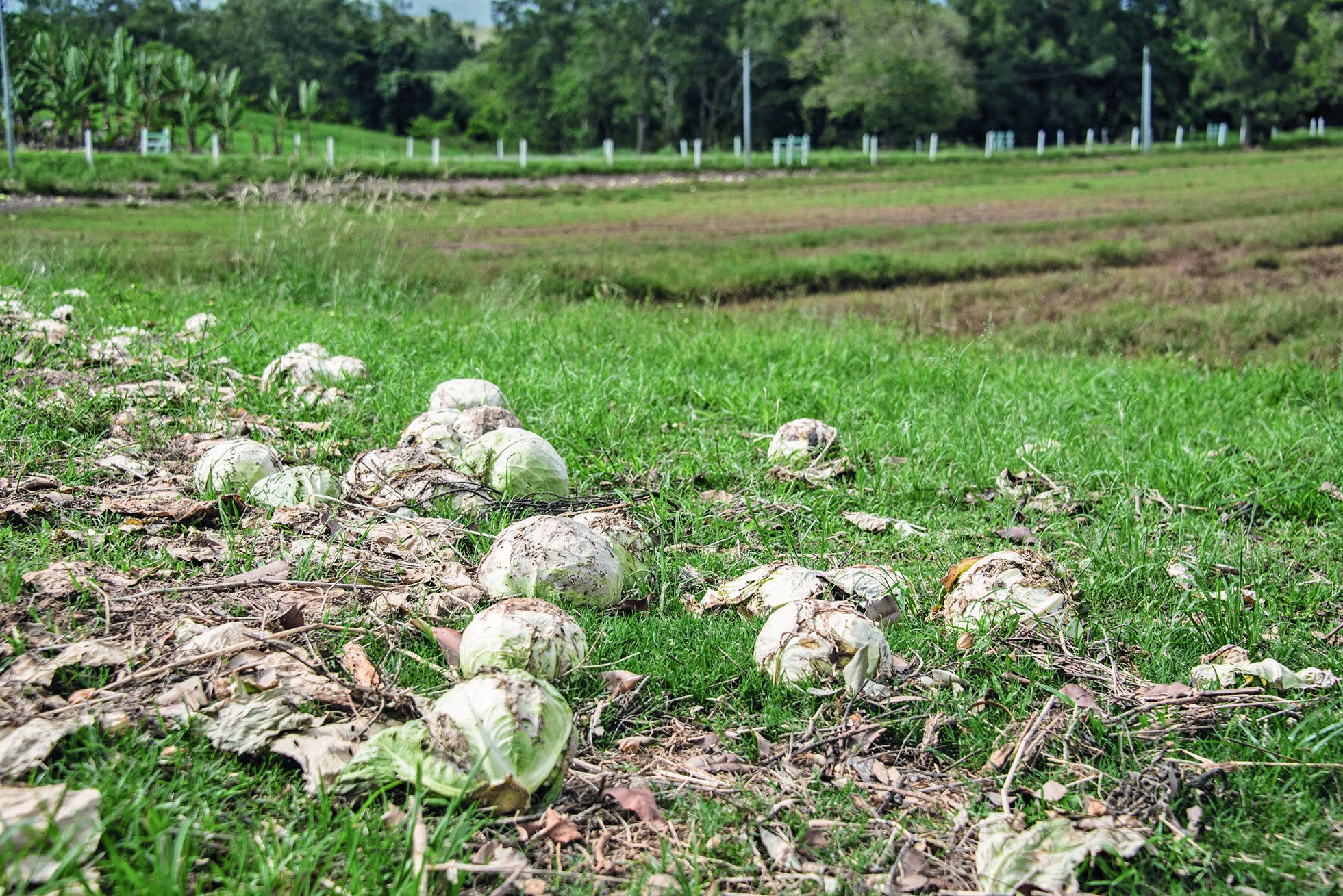 Comme ces concombres et ces choux qui pourrissent au sol, rien n’a pu être sauvé sur les 120 hectares du Domaine de Téné, le plus gros maraîcher du Caillou, situé route de la Tarodière. D’autres ont aussi été touchés sur la route de Bouirou.