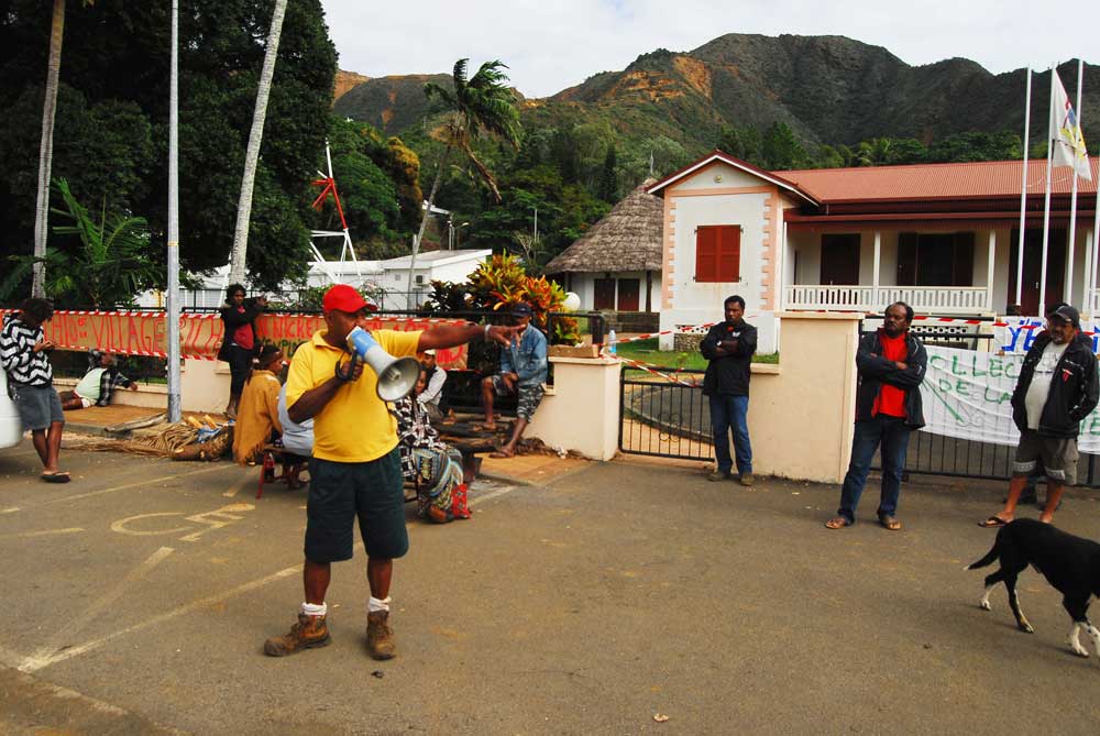 Thio_manif3.jpg ; le 07/10/2013 - 15:06Réunis devant la mairie, hier, les habitants ont été unanimes à interpeller la SLN pour nettoyer la rivière. Le piquet a été maintenu cette nuit.
