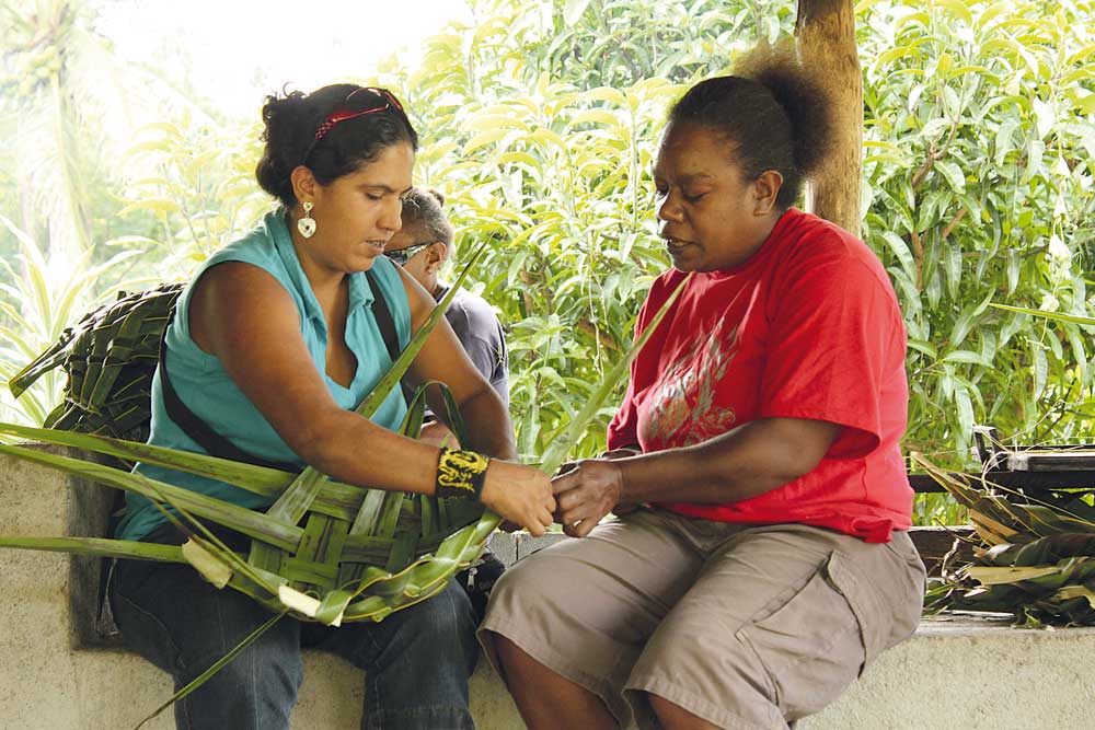 L'Association des femmes de la tribu de Katricoin propose des ateliers de vannerie ou des démonstrations de confection de monnaie kanak.