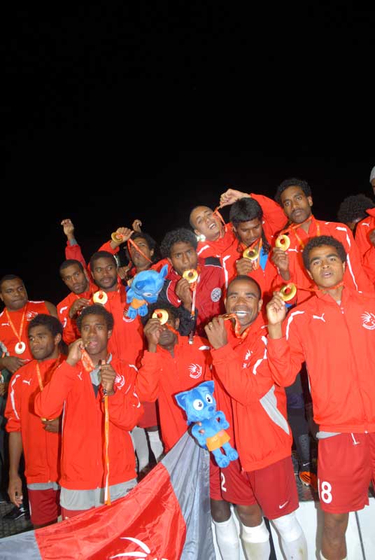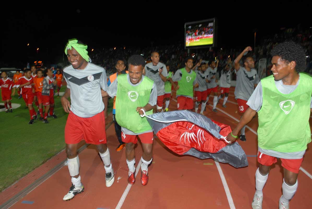 La tête dans les étoiles ; le 09/10/2011 - 00:52En ouvrant le score très rapidement, Georges Gope-Fenepej a libéré ses partenaires qui ont ensuite dominé les Salomonais hier soir en finale.Photo : Thierry Perron